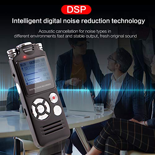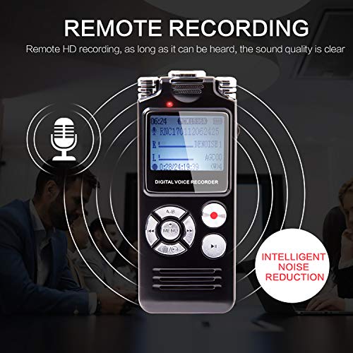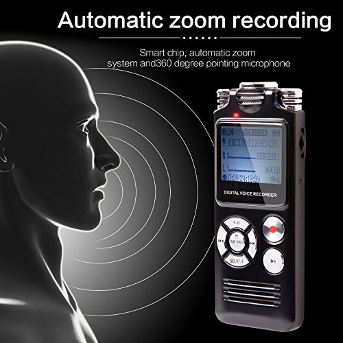 【Built-in intelligent noise reduction chip】Can be filter the surrounding noise directly, you can enjoy clear recording even from the furthest distance of 30 feet. With voice activation function, once the sound reaches the set decibel value, will record automatically and save.